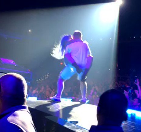 El momento fue registrado por los celulares de diferentes espectadores que se quedaron anonadados por lo que presenciaron. Ninguno de los dos resultó herido y la cantante prosiguió con el concierto, bromeando sobre el asunto: “Es maravilloso. Nos queremos tanto el uno al otro que nos caímos del maldito escenario”. Incluso hizo una referencia a una emblemática escena de la película Titanic: “Somos como Jack y Rose (…). Creo que deberíamos tomar un té después de todo”.