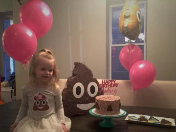 "A lo largo de varios meses, cada vez que le preguntábamos por la fiesta, Audrey pedía globos con forma de caca y una torta con forma de caca", explica Rebecca. "Intenté sugerirle otros motivos, pero ella insistía en que quería caca". Al final, su marido y ella decidieron aceptar esta peculiaridad y organizar para Audrey la fiesta que ella quería.La madre confirma que a todos les pareció una fiesta muy divertida. "Creía que los abuelos dirían algo, pero todos se rieron cuando se lo conté", añade.