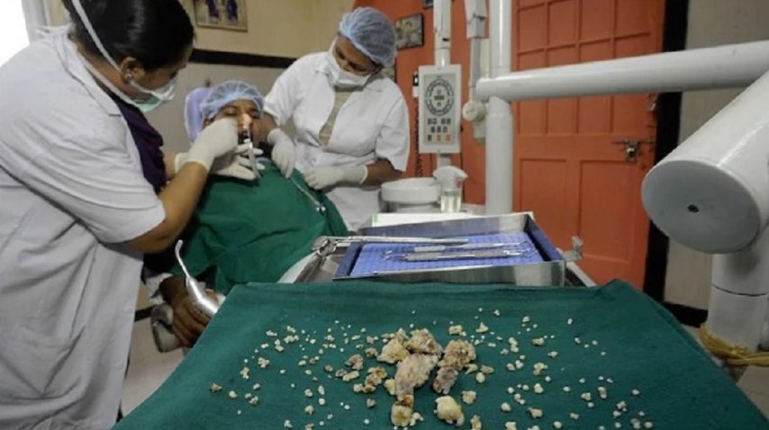 Un joven de India fue operado del paladar porque no soportaba el dolor que le generaban sus más de doscientos dientes, producto de una suerte de tumor benigno. Ashik Gavai llevaba ya 18 meses sintiendo molestias en el paladar, hasta que no soportó el dolor y fue intervenido en el hospital JJ de Bombay. "Al principio, no podíamos extraerlo, así que tuvimos que usar cincel y martillo para sacarlo", contó la doctora Sunanda Dhiware, jefa del departamento dental.