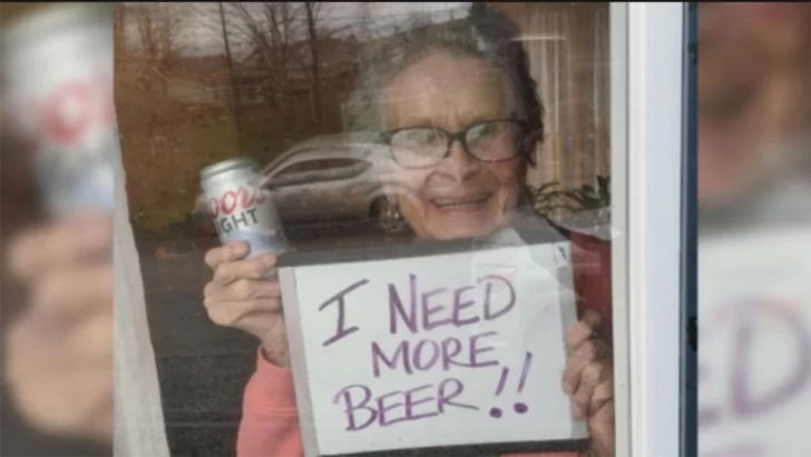 Por lo tanto, decidió apelar a la solidaridad de sus vecinos al sentarse junto a una ventana de su casa, con una lata de cerveza en una mano y, en la otra, un cartel que decía: "Necesito más cerveza". La súplica de la mujer fue retratada en una foto que no tardó en volverse viral. Más de cuatro millones de personas la vieron en Facebook y miles de usuarios se ofrecieron a llevarle cerveza a su domicilio.