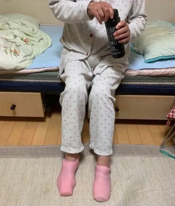 El nieto entró a su habitación y encontró a la anciana recostada con algo rosa en sus pies. Al darse cuenta de que se trataba de sus "masturbadores", no pudo aguantar la risa y la filmó. Además, tuvo que ayudar a su abuela a sacarse las "medias" ya que están hechas de silicona.