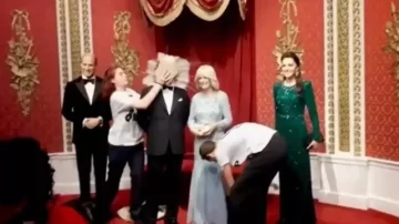 La figura del monarca "atacada" se encuentra expuesta junto a las de otros miembros de la familia real británica, como su esposa Camila Parker — reina consorte del Reino Unido—; su hijo Guillermo, el príncipe heredero al trono, y su esposa, Kate, princesa de Gales, en el famoso museo de estatuas de cera.