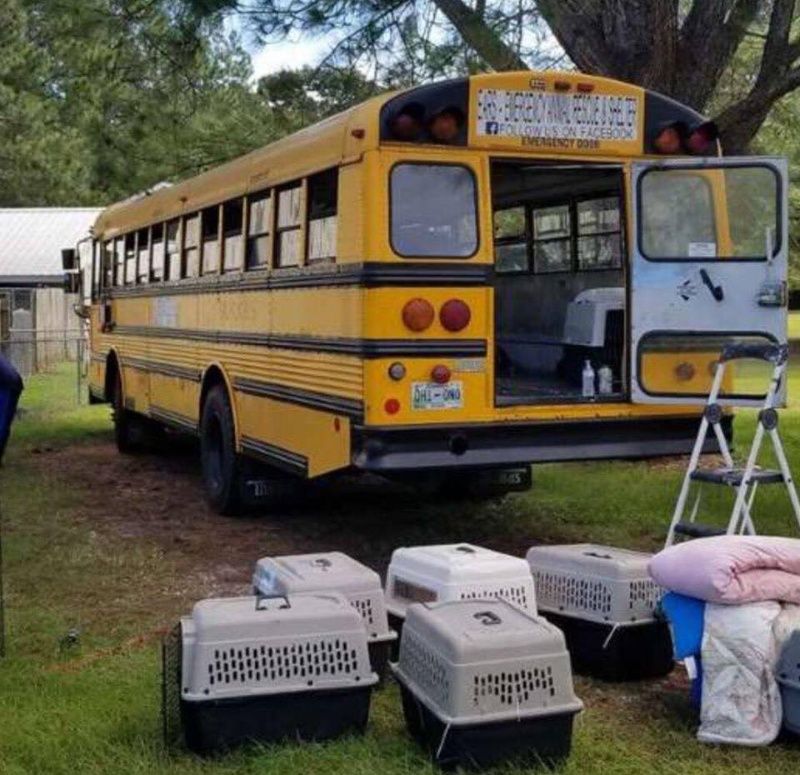 Alsup identificó al bus con una leyenda "Refugio de Emergencia para Animales Rescatados". Y allí trasladó a 53 perros y 11 gatos que, según dijo una amiga que lo está ayudando, serán bañados y tratados como si estuvieran en un spa. Después serán enviados a otros refugios o dados en adopción.