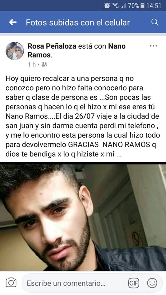 Según la mujer, el 26 de julio llegó a San Juan y perdió su celular. Pero afortunadamente, el teléfono cayó en buenas manos porque Nano Ramos pudo encontrar a la dueña y devolverlo.