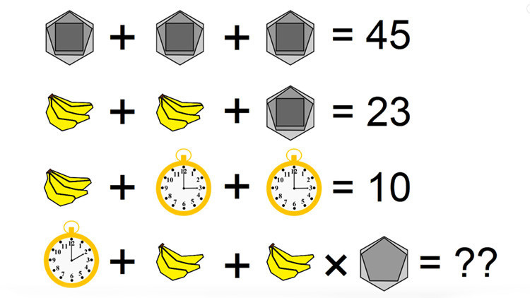 En la redes circula un nuevo ‘puzzle’ matemático que desafía a los internautas. Este rompecabezas conhexágonos, plátanos y relojes no es nada fácil de resolver, el 99% de los que lo intentan fracasan.