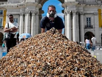 Ecologistas recogieron en Portugal unas 650.000 colillas de cigarrillo y las amontonaron este domingo en una plaza del centro de Lisboa para concientizar sobre este tipo de contaminación.