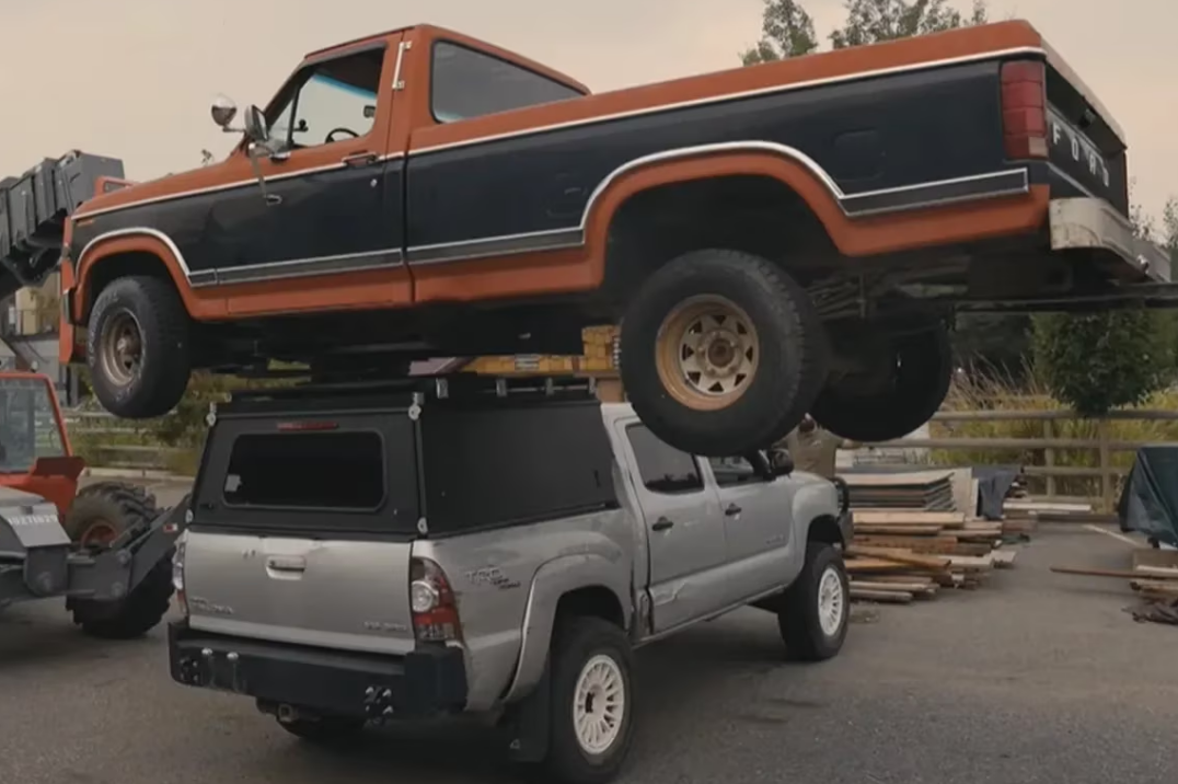 El experimento consistió de dos partes: sobre una Toyota Tacoma instalaron primero al Topper y con un montacargas, llevaron a la F-150 sobre él. Después de varios minutos de testeo, comprobaron que la estructura no cedía y que ambas pickups quedaban apiladas sin ningún problema. La verdadera prueba llegó minutos después, cuando trajeron otra Tacoma pero con el cerramiento de tipo normal que se ve en la mayoría de las pickups.
