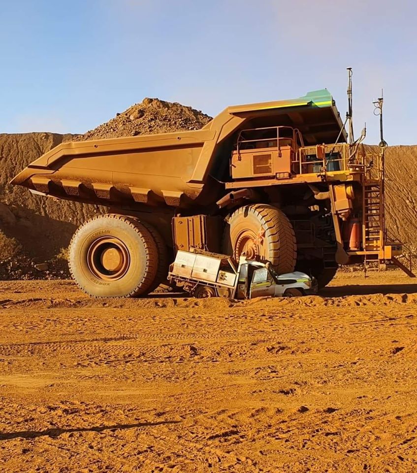El medio australiano compartió una foto desde el lugar del incidente. Si bien del coche —que tiene aproximadamente el mismo tamaño que la rueda del camión— no quedó casi nada, el autovolquete se ve perfectamente bien, como si no hubiese recibido un solo rasguño. El vehículo personal del operario estaba vacío, por lo que nadie resultó herido.
