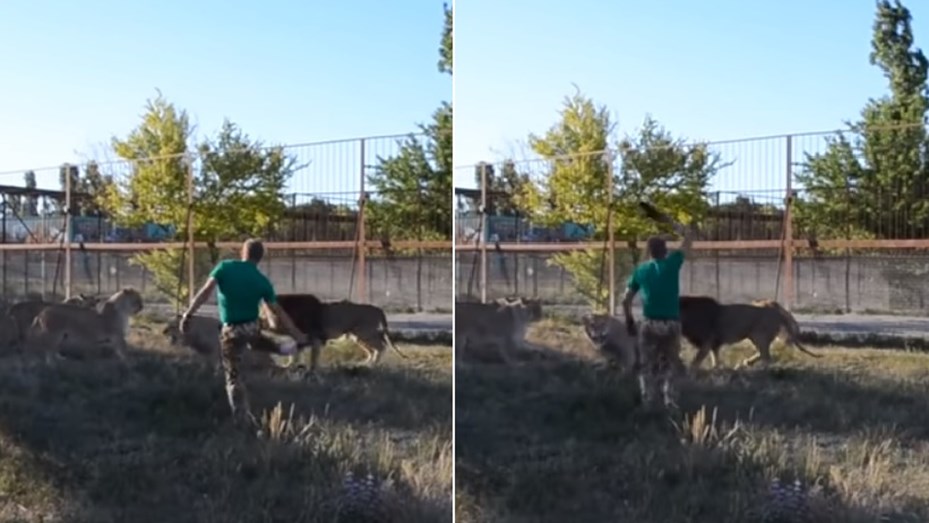 Es que Zubkov no dudo en sacarse la chancleta y encarar a los animales: "No me importa que seas león, te voy a dar una paliza", gritó.