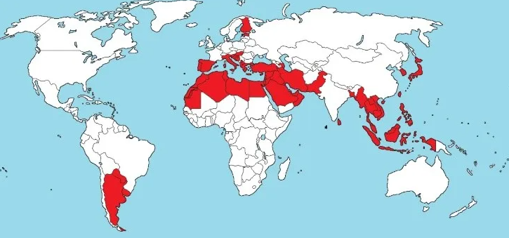 En Europa, ya con el chorro de agua horizontal, está presente en Grecia, Italia, España y Portugal. También se emplea en Medio Oriente sobre todo en Egipto y Marruecos. Una buena noticia para quienes viajen al mundial es que también está presente en el mundo árabe especialmente en Líbano, Siria, Jordania, Kuwait, Arabia Saudita, Emiratos Árabes Unidos y Qatar.