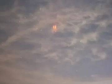 Las imágenes muestran como las intensas luces. Sin embargo, la niebla de la noche complicó que se identificara de dónde provenía la luz y explicar el extraño fenómeno en el cielo.