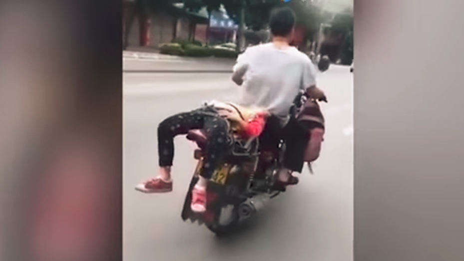 Un impactante video generó indignación en las redes sociales. En las imágenes se ve a un hombre manejando una moto que lleva a su hija atada de espaldas en el asiento de atrás.