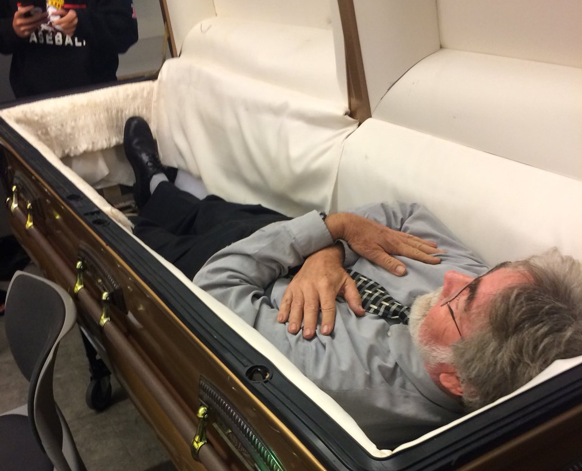 “Mi profesor llevó un ataúd para decir ´sus calificaciones me dejaron muerto´”. Con esa explicación un usuario de Twitter compartió la foto del docente dentro de un ataúd.
