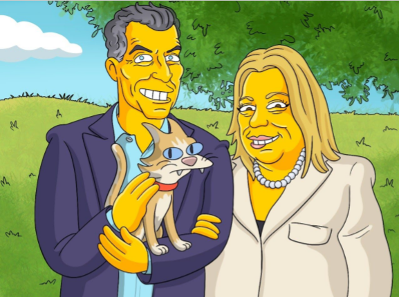 También aparecieron Mauricio Macri, acompañado de Bola de Nieve, el gato de los Simpsons y Elisa Carrió a su lado.