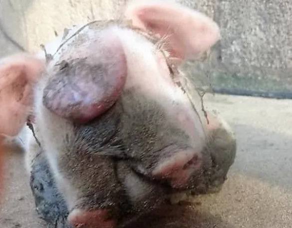 El puerquito nació el jueves 21 de junio, y fue la residente Stephany de la Cruz Martínez quien comunicó su nacimiento ya que el animal llegó a este mundo con dos cabezas.
