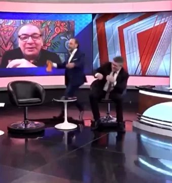 Acto seguido, Etchecopar se resbaló y cayó al piso provocando carcajadas en los panelistas. Rápidamente el locutor se levantó y aseguró con humor: "Basta che, estoy viejo y me pusieron una trampa encima". Sin embargo, los integrantes del programa seguían a pura risa en vivo y el desopilante momento no pasó desapercibido.