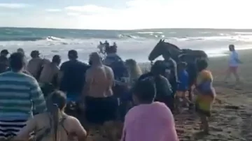 Un hombre se metió en una playa pública con un caballo y causó indignación y preocupación entre los bañistas que estaban pasando la tarde con sus familias.