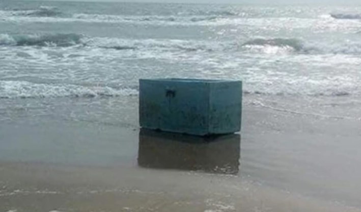 La información preliminar destaca que según las condiciones en las que se encontraron los restos, puede ser que pertenezcan a alguna persona cuya embarcación naufragó y la marea arrastró la caja hasta las orillas de la playa.