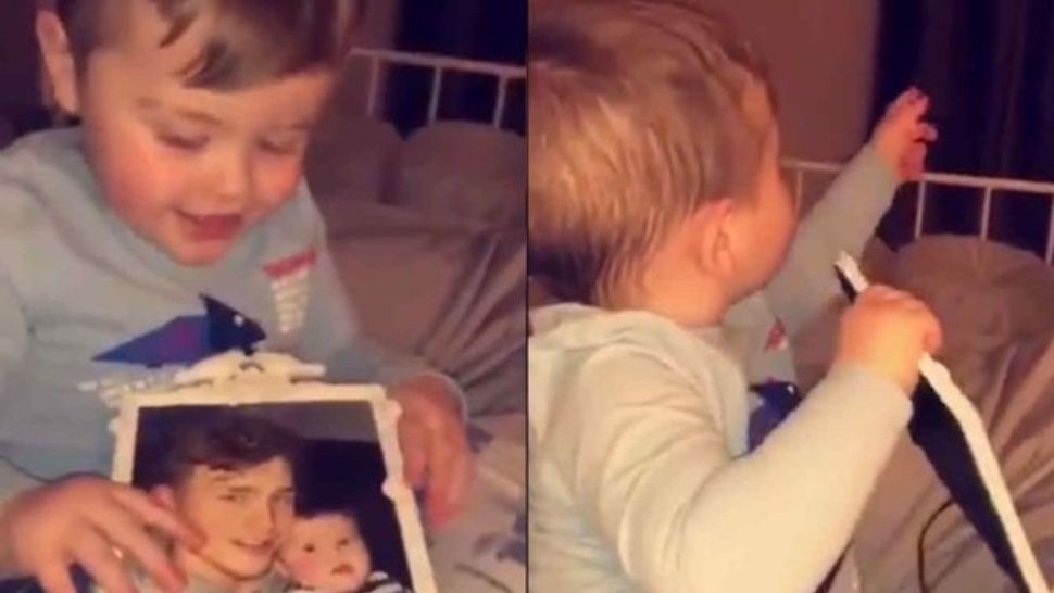 En el video, que dura solo unos segundos, se puede ver a una madre mostrándole a su bebé una foto de su papá. El bebé la agarra y después gira hacia el otro lado de la habitación, donde no hay nadie.