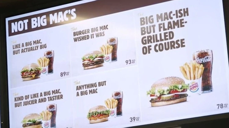"Como un Big Mac, pero realmente grande"; "La hamburguesa que el Big Mac desearía haber sido"; "Como un Big Mac, pero más jugosa y más sabrosa" y "Cualquier cosa excepto un Big Mac". Estas fueron algunas de las frases que utilizó Burger King en los afiches que empapelaron sus locales de comida rápida en Europa.