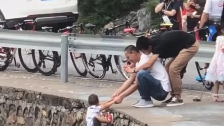 Un impactante hecho tuvo lugar en China y generó repudio e indignación en las redes sociales. En las imágenes, captadas por un turista, se puede ver cómo un hombre arriesga la vida de su pequeño hijo colgándolo de un precipicio para sacarle un foto “extrema”.