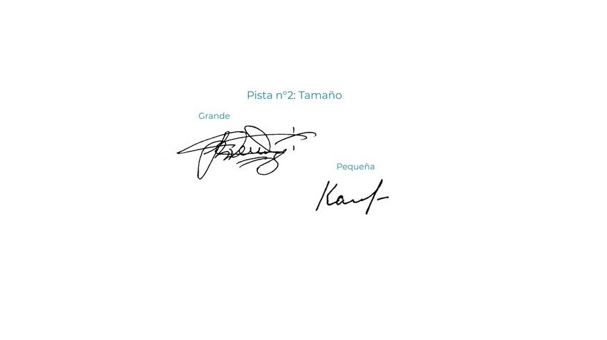 El tamaño también es un indicio de la confianza que se tiene de uno mismo. Cuando es excesivamente grande, se puede vincular con un cierto narcisismo. Mientras que si es pequeña, hay una enajenación palpable y una falta de amor propio. Una divertida prueba para ver la propia autoestima es intentar hacer la firma de distintos tamaños y ver con cuál se siente más cómodo.