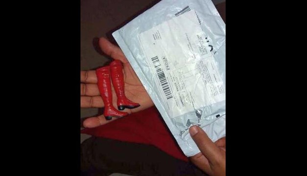 Como se ve en las imágenes de Facebook, él ordenó un par de botas rojas que estaban de oferta. Tras esperar la llegada del producto, finalmente obtuvo un par de botas rojas pero listas para una muñeca Barbie o para ser usadas con los dedos.