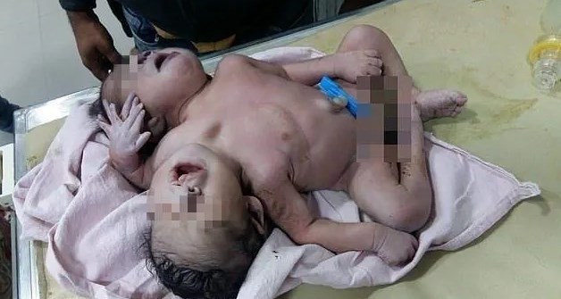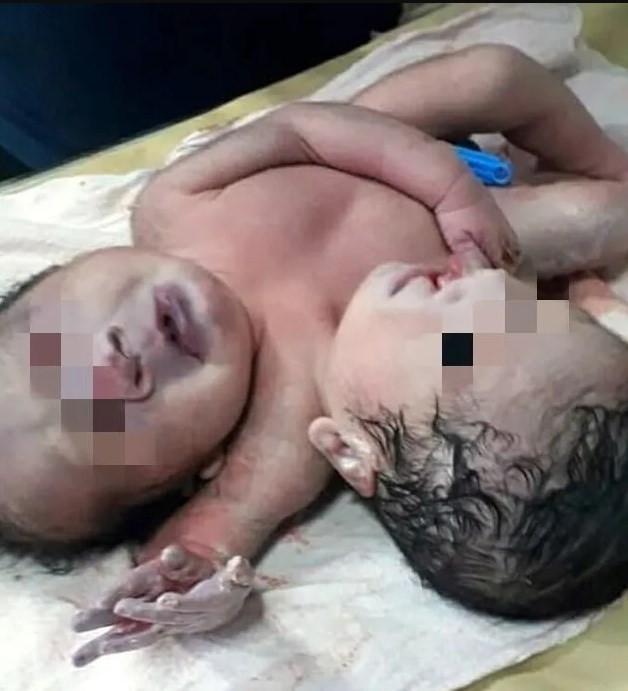 Una mujer se internó en un hospital de la India para dar a luz a sus gemelos. Durante el parto, los médicos quedaron conmocionados al darse cuenta que era un solo bebé con dos cabezas y tres brazos, un caso poco frecuente de siameses que comparten la totalidad de sus órganos vitales.