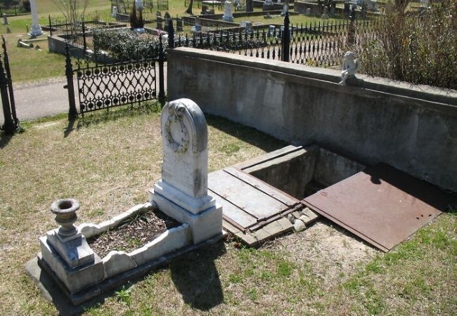 La tumba que llama la atención de las personas que vistan a sus deudos, se encuentra en el cementerio de Natchez City en Mississippi.