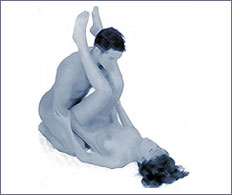 Una variación es que él se siente con las piernas cruzadas y apoye las manos atrás. Te sientas frente a él, le abrazas los costados con los muslos. Si él te quiere acariciar puede apoyar la espalda contra la pared para tener más equilibrio y tener las manos libres.