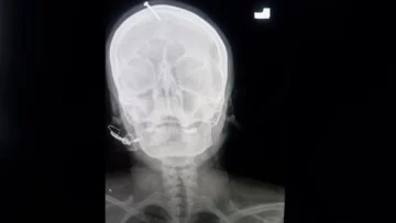 Una radiografía mostró que el clavo había sido clavado cinco centímetros en el cráneo, sin llegar al cerebro.
