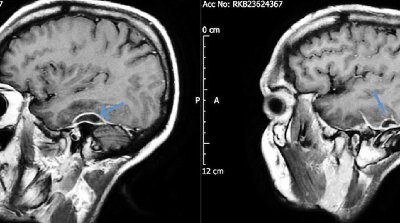 El paciente presentó convulsiones y estuvo a punto de colapsar. Los primeros exámenes que le realizaron, mostraron que el presentaba adormecimiento, desorientación y un estado alterado de conciencia. Le contó a los médicos que días antes tuvo dolores de cabeza, así como dificultad para recordar nombres. Dijo, además, que durante los últimos cinco años padeció un interminable dolor en el oído izquierdo y que poco a poco estaba perdiendo la audición.