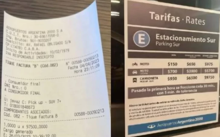 Una turista dejó su auto en el estacionamiento del Aeroparque Metropolitano por diez días mientras viajaba por el país y al regresar a recoger su vehículo se horrorizó con lo que tenía que pagar por ese servicio. La mujer publicó el ticket del parking en las redes, donde consta que le cobraron $97.500, una cifra que ella calificó como “una locura”.