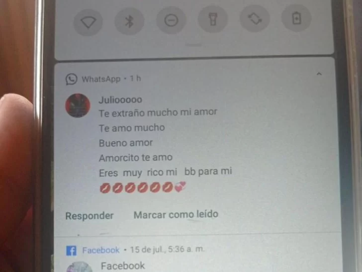El chat pertenecía a un contacto agendado como Julio, que le escribía: "Te extraño mucho mi amor. Te amo mucho. Bueno amor. Amorcito te amo. Eres muy rico para mí bb para mí".