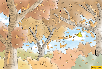Aunque parece algo sencillo, el dibujo tiene trampas. Utiliza efectos visuales utilizando hojas de los árboles y pájaros que bien puede confundirte a la hora de contarlos.