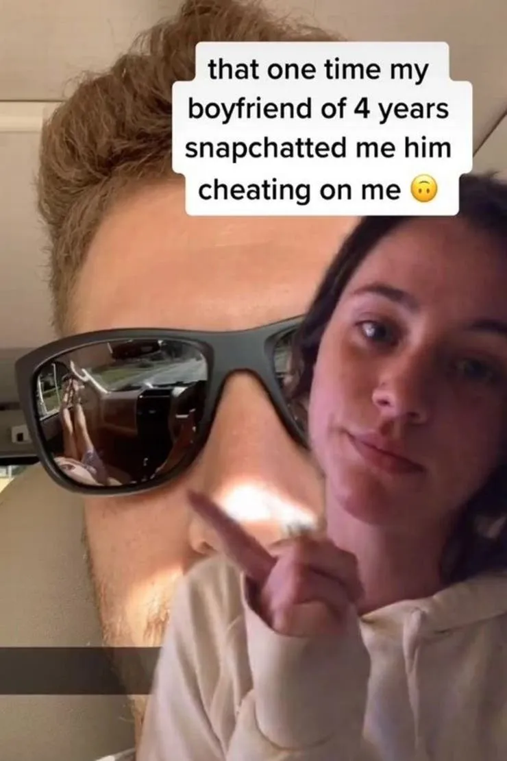 Tras ver en el reflejo de los lentes de sol de su novio dos piernas de mujer, que pertenecían a una acompañante que el sujeto trataba de ocultar, descubrió el engaño y lo expuso sin dudarlo en la red social TikTok.