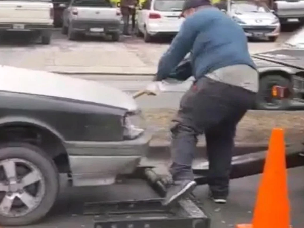 La escena fue filmada y el video se viralizó. Allí se puede ver al conductor dándole golpes al vehículo.