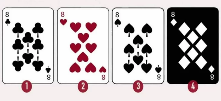 En la fotografía se ven: el 8 de tréboles, el 8 de corazones, el 8 de diamantes y el 8 de espadas.