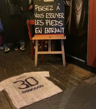 A su vez, en otra imagen que se viralizó por las redes sociales, se ve el ingreso a un restaurante, local gastronómico o nocturno, con un cartel en la zona de ingreso que tenía una leyenda escrita: “Recuerde limpiarse los pies antes de entrar”. Y en el piso una remera del París Saint Germain con la 30 de Messi que sirve como alfombra en un claro acto digno de reprobación. La publicación fue rápidamente viralizada y generó el repudio tanto de argentinos como de muchos hinchas del jugador rosarino. Estas imágenes llegan después de que muchos medios europeos cuestionaran la supuesta falta de ética de los futbolistas argentinos y la acusaran de ser “malos perdedores”.
