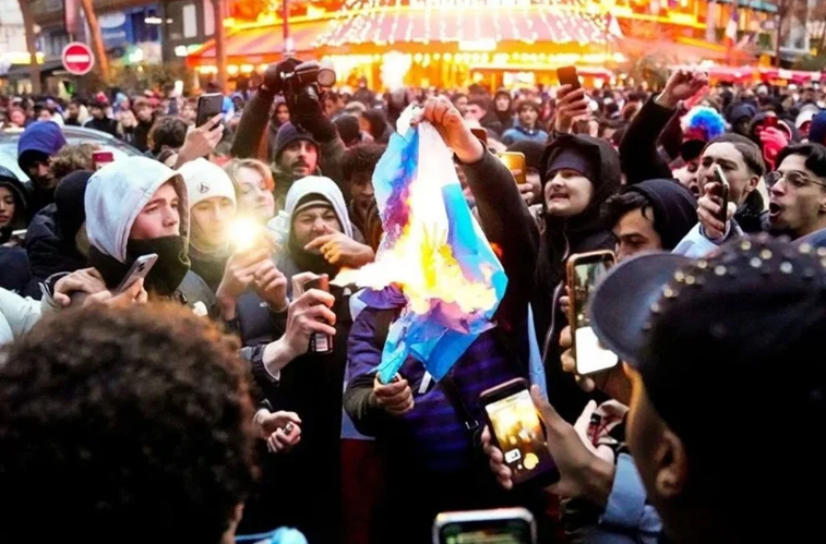 Mezcladas en esas reacciones diversas, hubo dos actos reprochables que surgieron en algunos puntos específicos de la ciudad parisina. Mezclados en la multitud que cobijó la llegada de los futbolistas franceses se vieron escenas lamentables. Un grupo reducido de hinchas incendió en las calles de la capital una bandera argentina mientras otros filmaban y algunos incitaban el hecho.