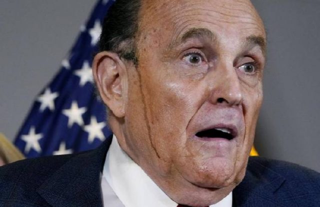 La imagen de Giuliani pasó a recorrer distintos medios y muchos se preguntaron si efectivamente se trataría de la tintura de su pelo, dado que el líquido se desprendió desde su cabeza hasta sus mejillas.