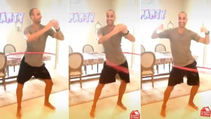 La prueba la aportó la mujer de la estrella del básquet argentino. Marianela Oroño grabó el momento en el que Ginóbili hacía el hula hula, moviendo sus caderas para evitar que se le cayera el aro. "Día 19… poniendo en riesgo mi matrimonio, les regalo esta perlita", escribió la esposa de Manu en su Twitter.