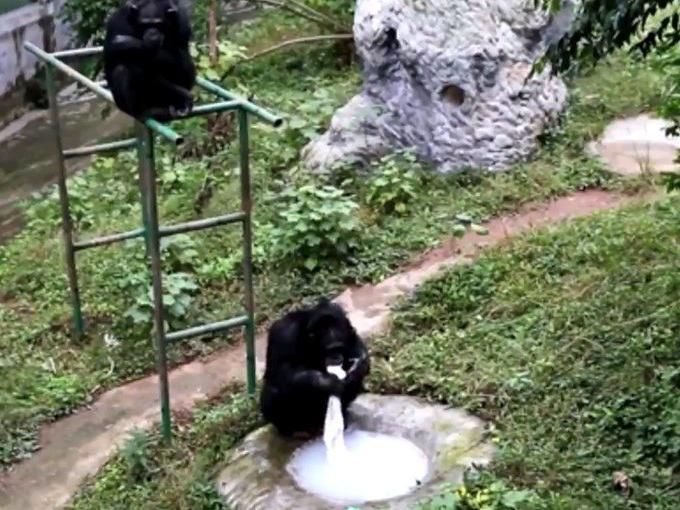 Imágenes grabadas el pasado viernes en el zoológico ‘Lehe Ledu Theme Park’, en Chongqing, un municipio del suroeste de China, muestran a un chimpancé macho, apodado Yuhui, de 18 años, lavando la ropa de su cuidador.