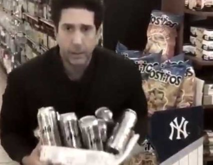Schwimmer publicó un divertido video de una parodia de sí mismo con los brazos llenos de latas de cerveza en un supermercado de Nueva York tras enterarse de la noticia.