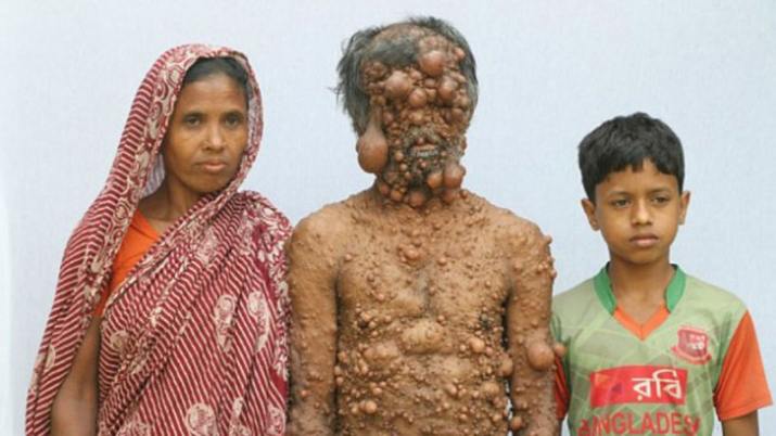Un hombre de Bangladesh se convirtió en el caso más avanzado de neurofibromatosis que se conozca en todo el mundo. El trastorno genético afecta a las células neurales del cuerpo y produce una gran cantidad de tumores benignos y manchas.Shadot Hossain, de 47 años, tiene tres hijos y una esposa pero ya no puede formar parte de la vida de su familia porque su condición actual lo deformó hasta convertirlo en una de las rarezas de Shajadpur, en Bangladesh, informó el sitio Daily Mail.