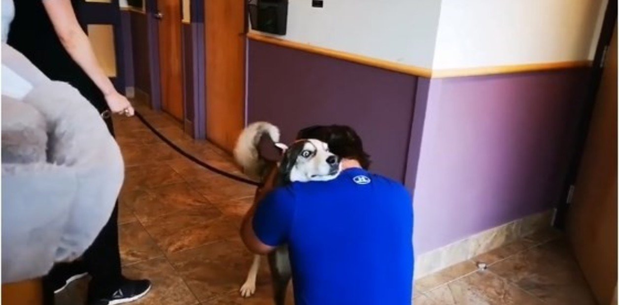 Su novia publicó un video del reencuentro: Jack llega y él lo abraza, con la imposibilidad de contener las lágrimas. Ya fue visto más de 3 millones de veces.