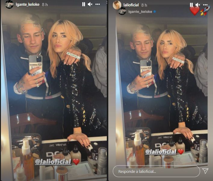 Lali Espósito y L-Gante se encontraron y quisieron retratar el momento. Él compartió la foto en las redes sociales y ella la compartió en la suya. La imagen parece haber sido tomada en un camarín ya que en el reflejo del espejo se ven maquillajes, pinceles, cremas y demás artículos que dejan entrever que estuvieron preparando a los artistas para un evento.