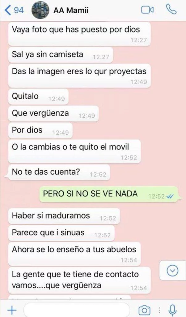 "Vaya foto que has puesto por Dios", empieza el mensaje de la madre, que rápidamente se empieza a enojar: "Quítalo. Qué vergüenza. O la cambias o te quito el móvil. ¿No te das cuenta?".