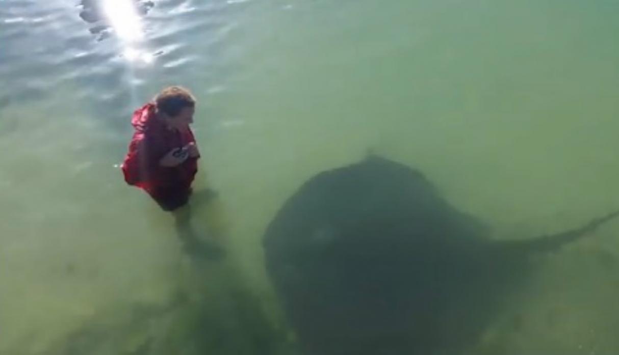En el video subido a Facebook se ve que el joven se encuentra cara a cara con la mantarraya. El protagonista del clip decide ingresar a una playa para divertirse en el agua, pero termina encontrándose con el mencionado animal.