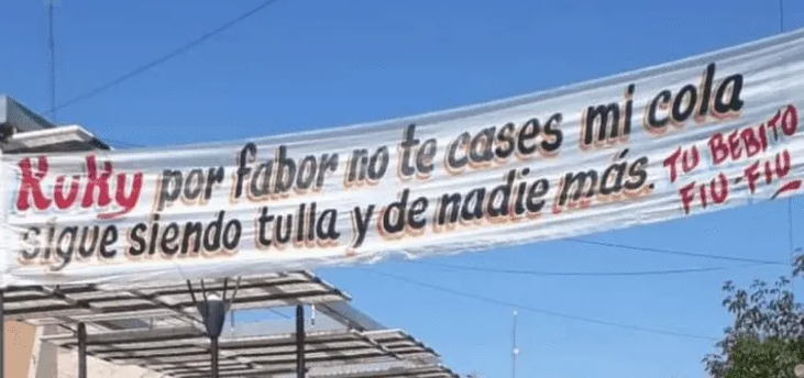 De esta manera, el original pasacalle decía: “Kuky, por favor no te cases”. Sin embargo, completó con un inesperado mensaje: “Mi cola sigue siendo tuya y de nadie más”. Para terminar firmó con la frase viral: “Tu bebito fiu fiu”.